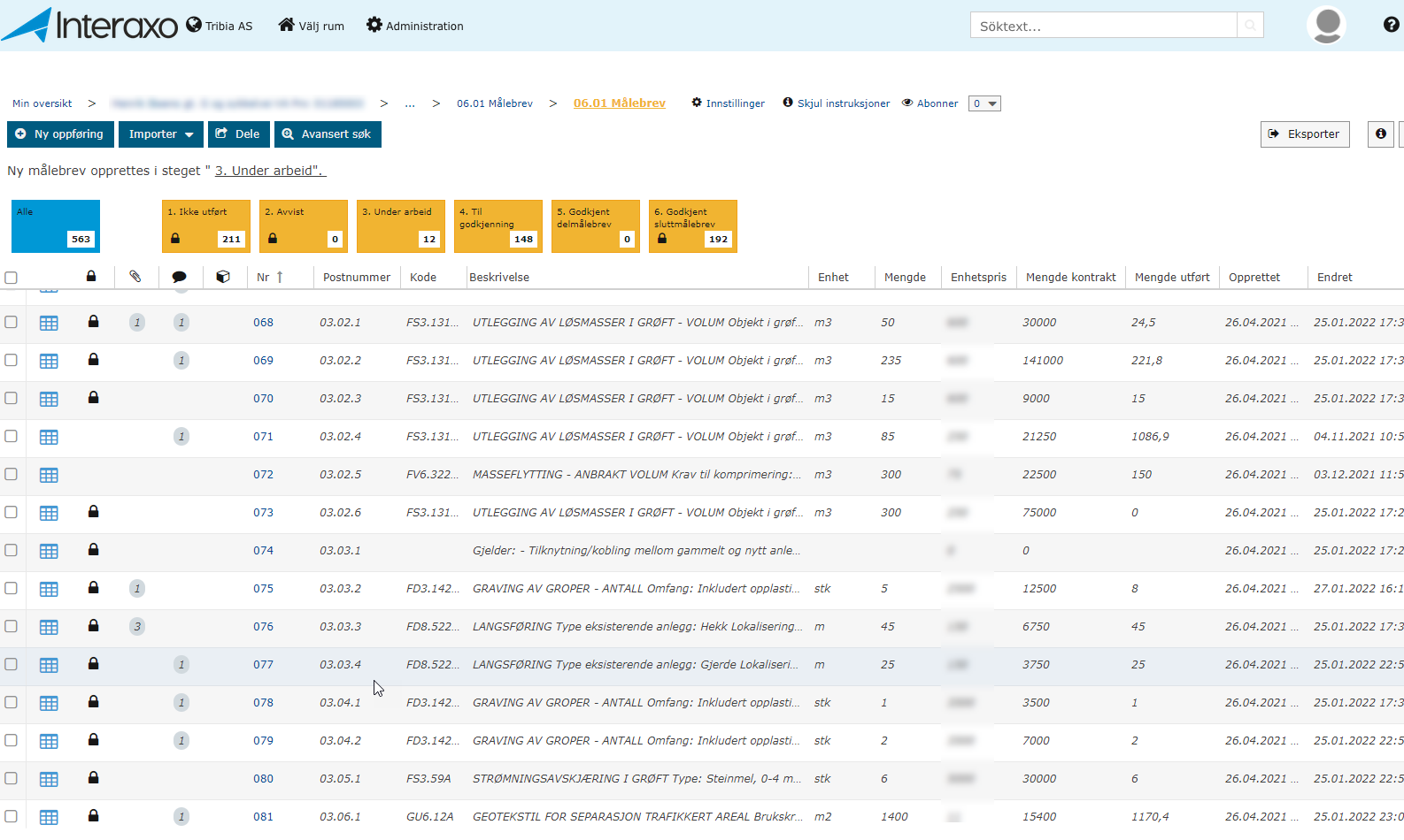 Med målebrevshåndtering i Interaxo får du god oversikt og økt effektivitet. Med sporbar kommunikasjon kan du alltid se hvem som har gjort hva og kan enkelt ta kontakt med vedrørende dersom dokumentasjon mangler. På denne måten kan du få smidig prosjektgjennomføring, og dempe potensielle konflikter.
